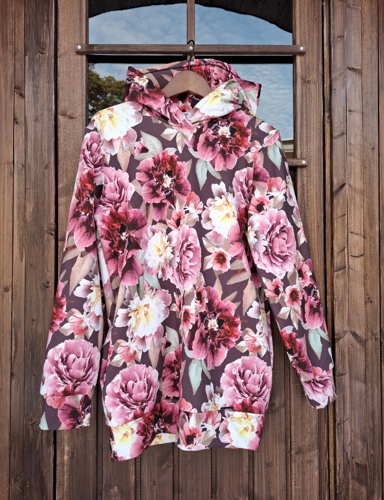 Tällä kertaa ompeluun pääsi Uniikit.comin Eeva-joustocollege. Niin ihanan fuksia ja reilunkokoiset kukat.