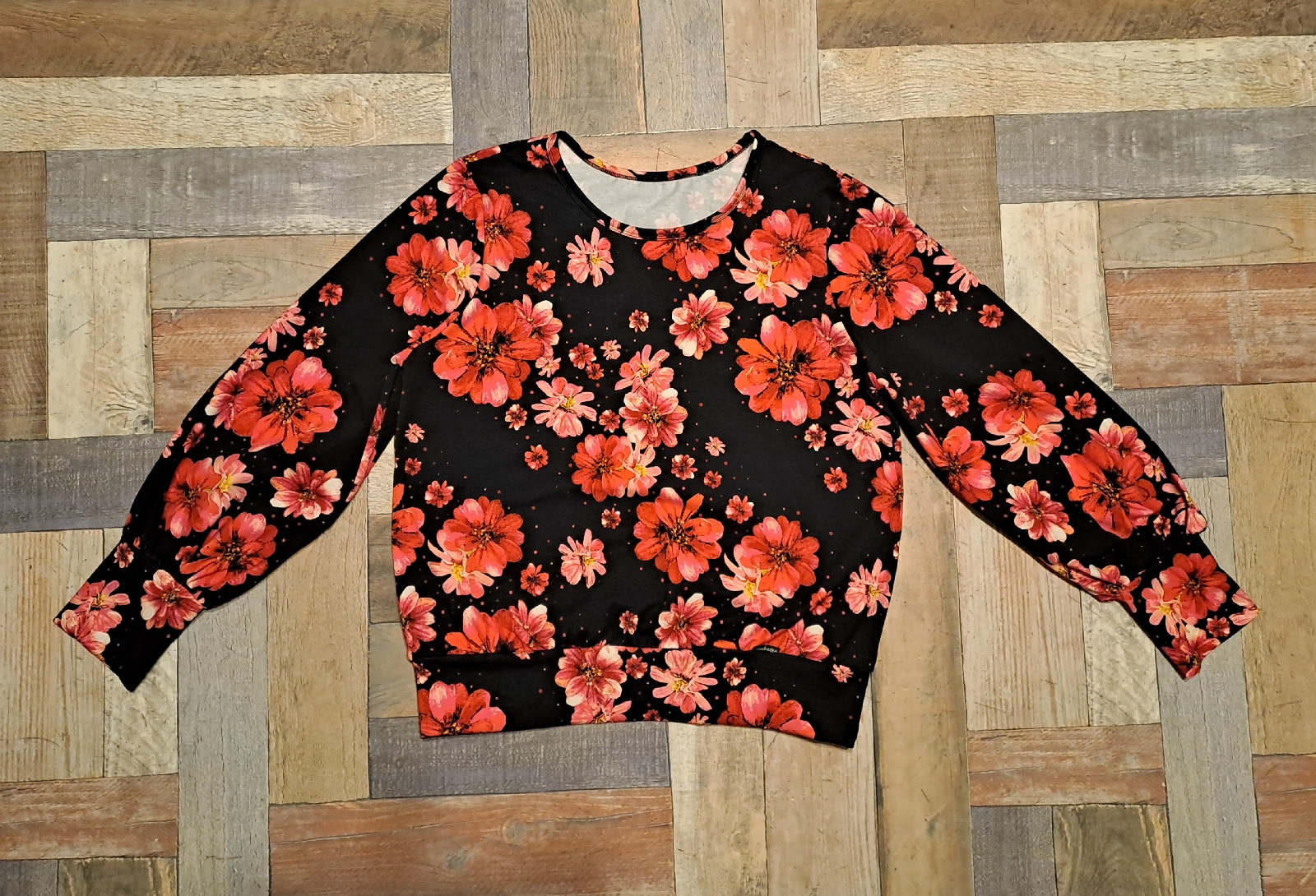 Viime viikonloppuna päättyi Alavaran järjestämä yllätyskangasompelu. Tällä kertaa yhteistyö oli yhdessä Uniikit.comin kanssa. Paketti olikin erittäin positiivinen yllätys, kun sieltä kuoriutui mustapohjainen, punakukkainen trikoo. Otin yllätyskangasta metrin, mutta sain siitä kikkailtua itselleni vision mukaisen paidan.